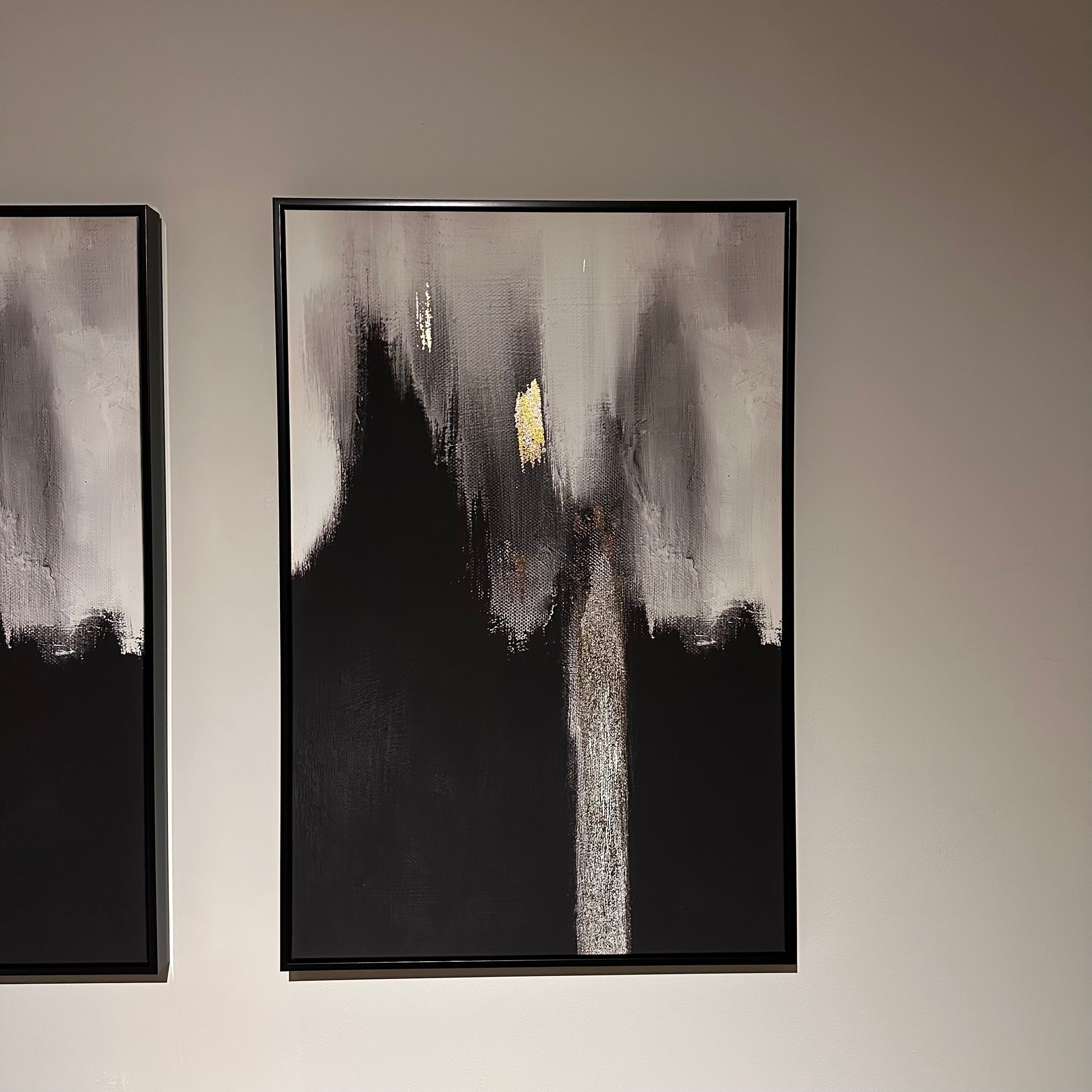 Este cuadro mediano en tonos blanco, negro y dorado aporta equilibrio y sofisticación a cualquier pared. Ideal para espacios modernos que buscan un punto focal con personalidad.